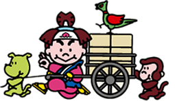 犬、猿、雉子を連れて宝物を運ぶ桃太郎……。